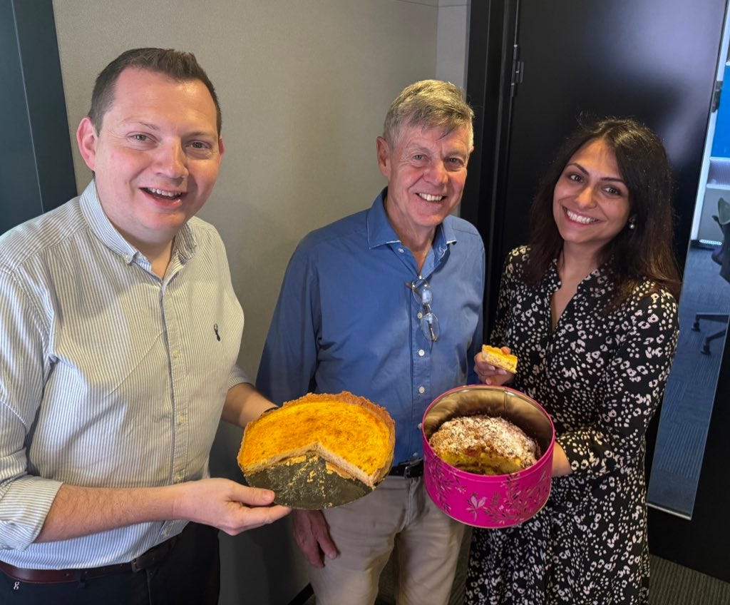 One of the joys of my Times Radio show has been The Columnists Panel, where the same pairing each weekday supposedly seriously analyses the news at 10.30am. What has been brilliant is the way each pairing have taken on their own vibe and quirks. Thursdays was “Manveen Rana and Someone Called Matthew” because Matthew Parris could only do fortnightly. Syed, Bell, Charlton and others filled the off week. But the Parris week’s were the best. Mainly because Manveen would bring in homemade cakes, and Matthew would eat them. I rashly boasted once that I made a decent quiche. So for our last morning together I did. A teacher once told me I had “good pastry fingers” which I have worn as a badge of pride every since. I used this very simple James Martin recipe, although obviously not with the tomatoes because I’m not a monster. Not gonna lie. It was delicious. And no soggy bottom.