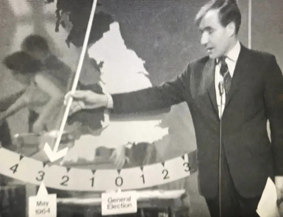 Butler’s friend and colleague Bob McKenzie would control the swing-o-meter for six elections from 1964, before the pendulum was passed first to Peter Snow, who swung a heavy metal pointer over an electronic screen which changed colour, and later Vine, whose graphics became increasingly ambitious (and baffling). It didn’t always work. In the Dudley West by-election in 1994, the swing from John Major’s Tories to Tony Blair’s ascendent New Labour was 29 per cent, which Snow’s machine could not compute. ‘It was too much for it,’ Snow recalls. ‘The whole screen went sort of blank.’ It happened again two decades later in Scotland after the 2015 general election, when a 30 per cent swing to the SNP was too much for the graphics. In fact, Scottish politics helped break the idea of a universal swing across the whole of the UK. In recent years broadcasters have experimented with two, three, even four different swing-o-meters, either to show the regional differences or the interplay between different party combinations. Something in its original simplicity, though, was lost.